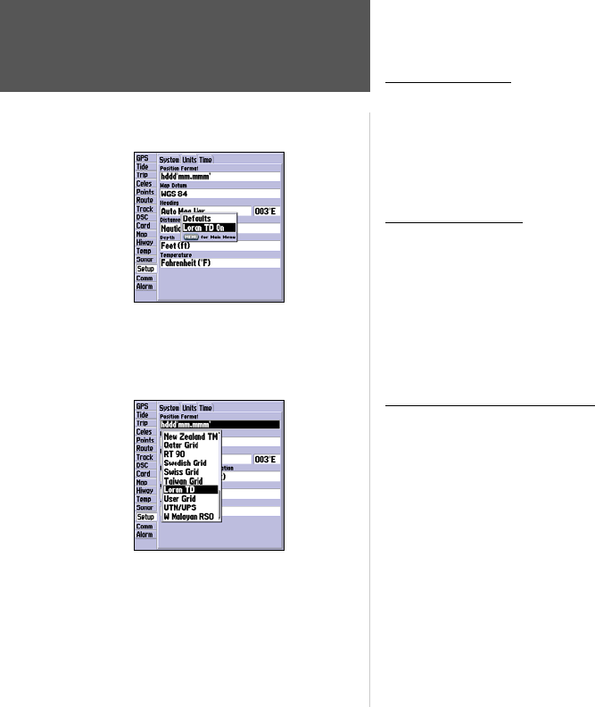 GPSMAP unit automatically converts GPS coordinates to LORAN TDs for those who have a collec-