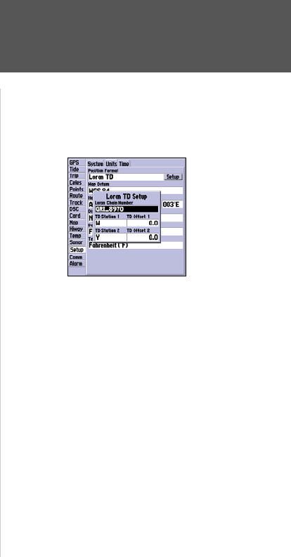 from the “Units” tab to display the ‘Loran TD On’ option. (If you use ‘Loran TD On’, skip to step 3.)