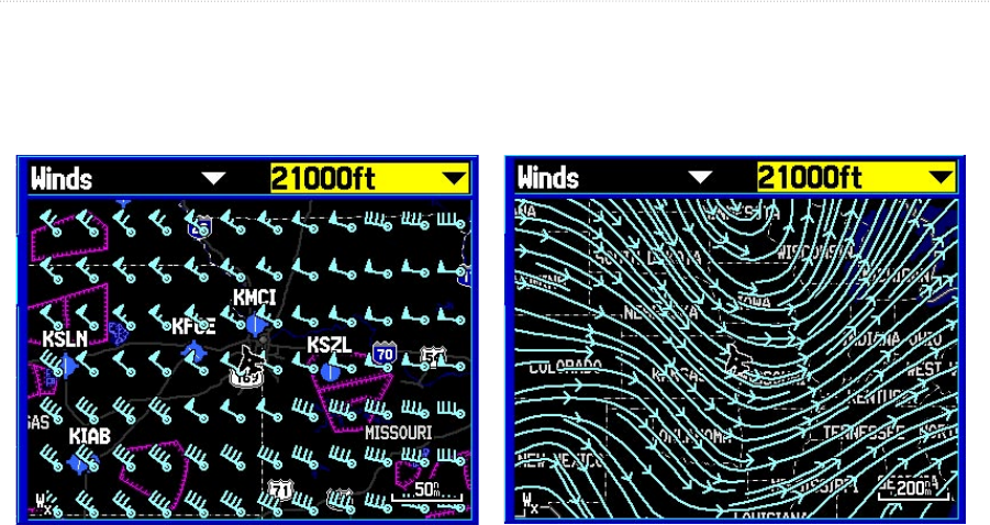 Aviation units display winds aloft using wind barbs or a wind streamline depending on the zoom range of the map. Similar to
