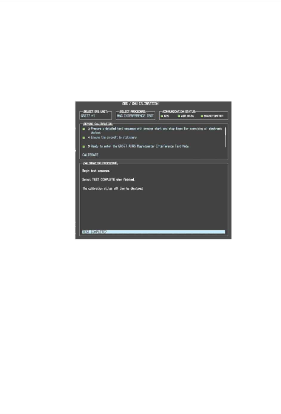 1. Initiate the AHRS magnetometer interference test procedure by performing the following steps: