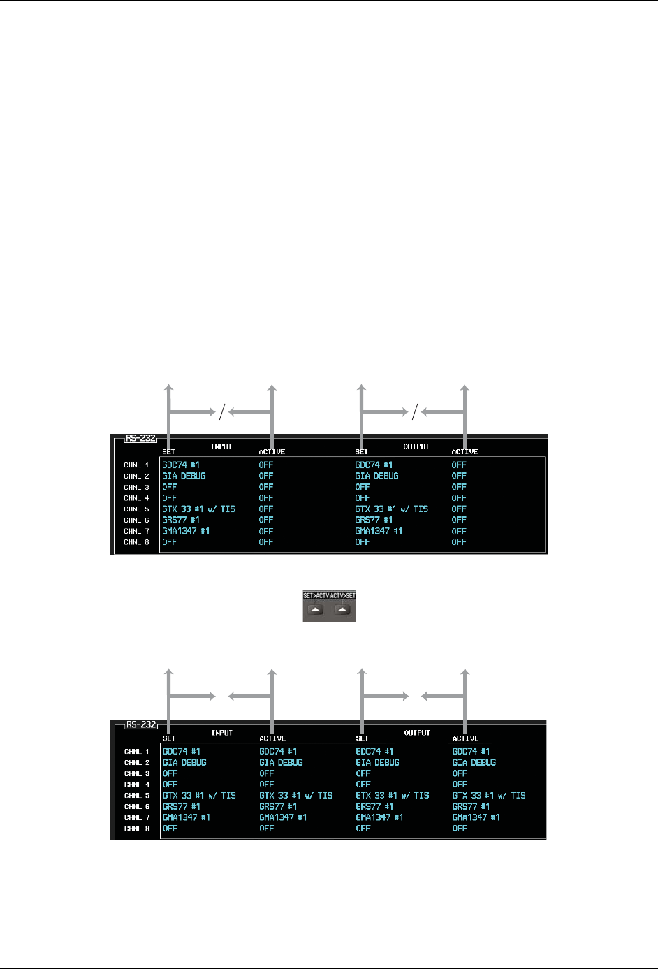 • ACTV>SET (read ‘Active to Set’) softkey: Causes the LRUs current settings to be copied to the
