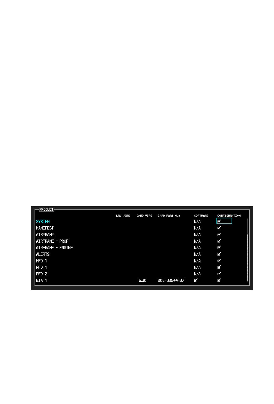 The PRODUCT window displays information regarding each G1000 LRU. The LRU