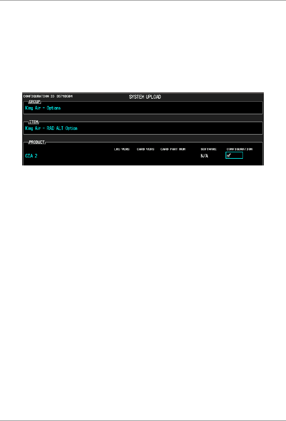 4. Verify the “RAD ALT Option” is displayed in the “Item” window. Press “LOAD”.