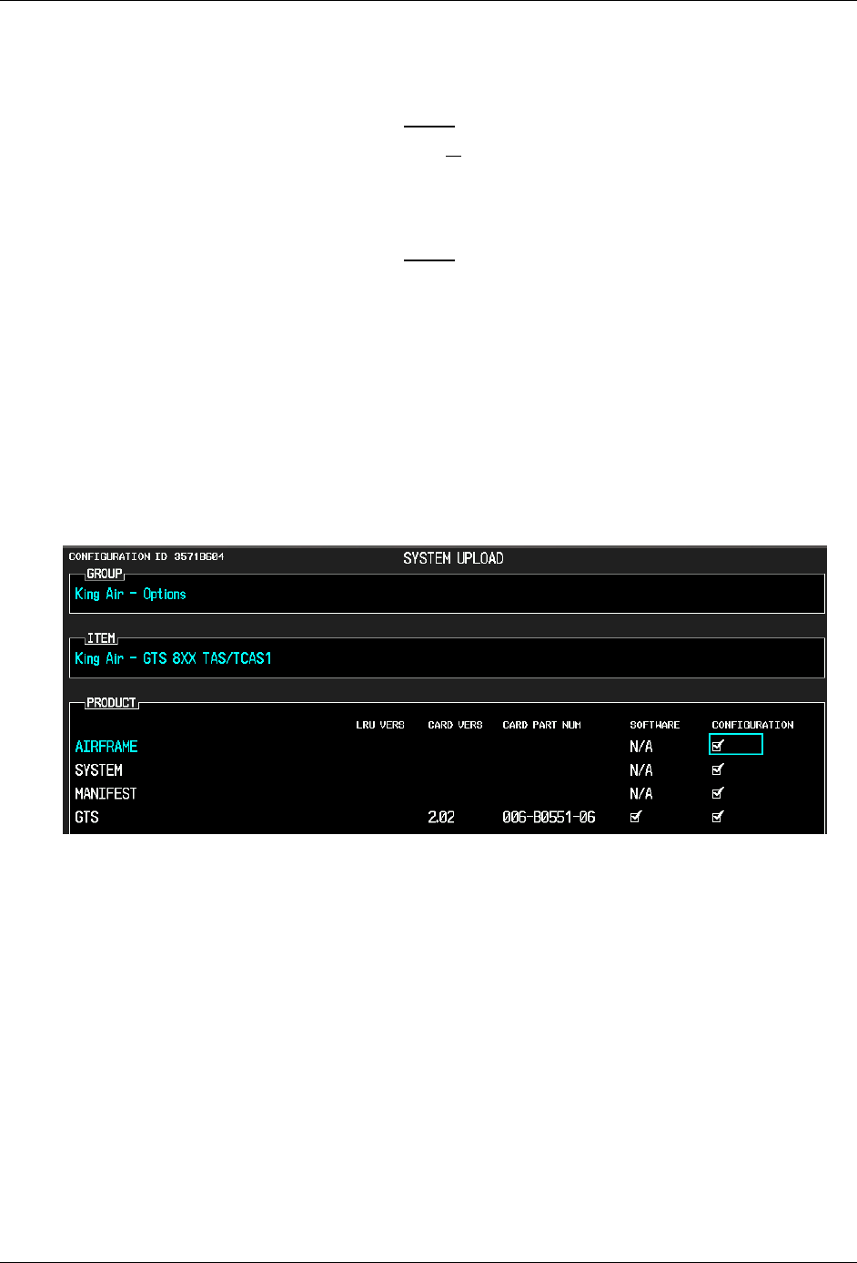 1. With the loader card in the top slot of PFD1 and PFD1 in configuration mode, select the “System Upload”