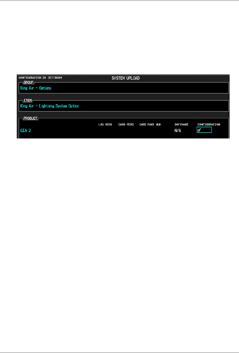 1. With the loader card in the top slot of PFD1 and PFD1 in configuration mode, select the “System Upload”