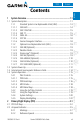 TOC Cover Sec 3 MFD Sec 4 Hazard Avoidance Sec 5 Additional Features Sec 6 Annun. & Alerts Sec 7 Symbols Sec 8 Glossary Appendix A Appendix B Index xi Sec 2 PFD Garmin G500/600 Pilot’s Guide Sec 1 System 190-00601-02 Rev. H Forward 4.4.5.4 Premature Descent Alerting.................................................. 4-20 4.4.5.5 Inhibiting/Enabling TAWS Alerting......................................... 4-22 4.4.5.6 Five-Hundred Aural Alert.......................................................