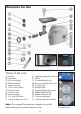Directions for Use D) Release button G) Power switch Name of the units A) B) C) D) E) F) G) g) H) h) I) Pusher Feed pan Worm housing Release button Motor housing LCD control panel Power button Caution light Reverse button On and off button fine grinding disc 3 mm J) K) L) M) N) 0) P) Q) R) S) T) medium grinding disc 4,8 mm Worm Crossed-blade knife Coarse grinding disc 8 mm Closing ring Adaptor disc Sausage filling attachment Kebbe attachment A Kebbe attachment B Cookie attachment Cookie attachment bla