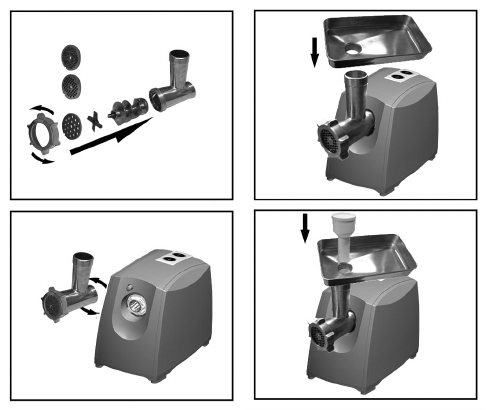 2. Halten Sie das Fleischwolfgehäuse mit derjenigen Öffnung nach oben, an der das