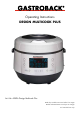 Dear Customer! Congratulations! A series of new possibilities come with your new Gastroback Design Multicook Plus. The Gastroback Design Multicook Plus is a modern multi-functional appliance of a new cooking generation. With this Multicook you can prepare healthy and varied dishes, saving much time.