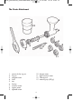 98100_pastaaufsatz_deskuechmaschadv_manual.qxp 11.12.2007 14:44 Seite 14 The Pasta Attachment 5 13 6 7 8 4 9 3 12 2 10 1 11 1. 2. 3. 4. 5. 6. 7. 8. 9. spanner for the ring nut ring nut spaghetti screen scroll tray housing macaroni screen rigatoni screen tagliatelle screen 10. 11. 12. 13.