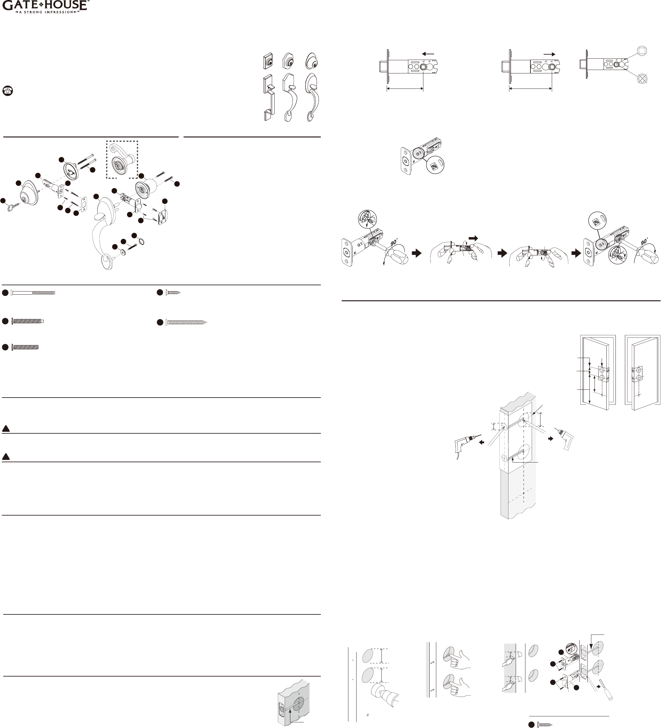 IF HOLES ARE ALREADY DRILLED IN YOUR DOOR, install latches and begin at step 2 “ INSTALLATION OF LOCKSET ”