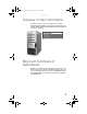 8512066.book Page 19 Tuesday, January 16, 2007 11:02 AM www.gateway.com 5 To open your computer’s main menu, click (Start). From that menu, you can run programs and search for files. For more information on using your computer’s menus, see “Using Windows” and “Customizing Windows” in your online User Guide. Waking up your computer Tip For more information about changing the power button mode, see the “Customizing” chapter in your online User Guide.