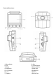 Product Structure: 1) 2) 3) 4) 5) 6) 7) Menu/Mode Up Down OK Button LCD Screen Lens Speaker 8) Mic 9) Power Button 10) Micro SD Slot 11) Mini USB 12) HDMI Out 13) Reset 14) Mount Slot