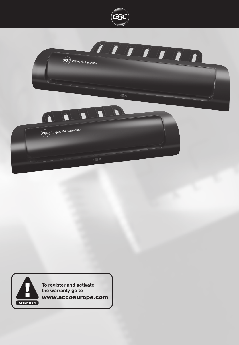 Dane techniczne GBC Inspire Laminator A4: 230 VAC/50 Hz/0,46 A/110W A3: 230 VAC/50 Hz/0,56 A/130W Dane elektryczne A4: 355 x 90 x 76 mm A3: 457 x 90 x 76 mm Wymiary urządzenia Waga urządzenia Maksymalna szerokość folii laminacyjnej Maksymalna grubość folii laminacyjnej Maksymalna grubość folii wraz z dokumentem Czas nagrzewania A4: 1,0 kg A3: 1,2 kg A4: 241,3 mm A3: 303 mm 2 x 75 mikronów (łącznie 150) 0,6 mm Około 7 minut 254 mm na minutę Prędkość Wskazówki dotyczące bezpieczeństwa m FIRMA A