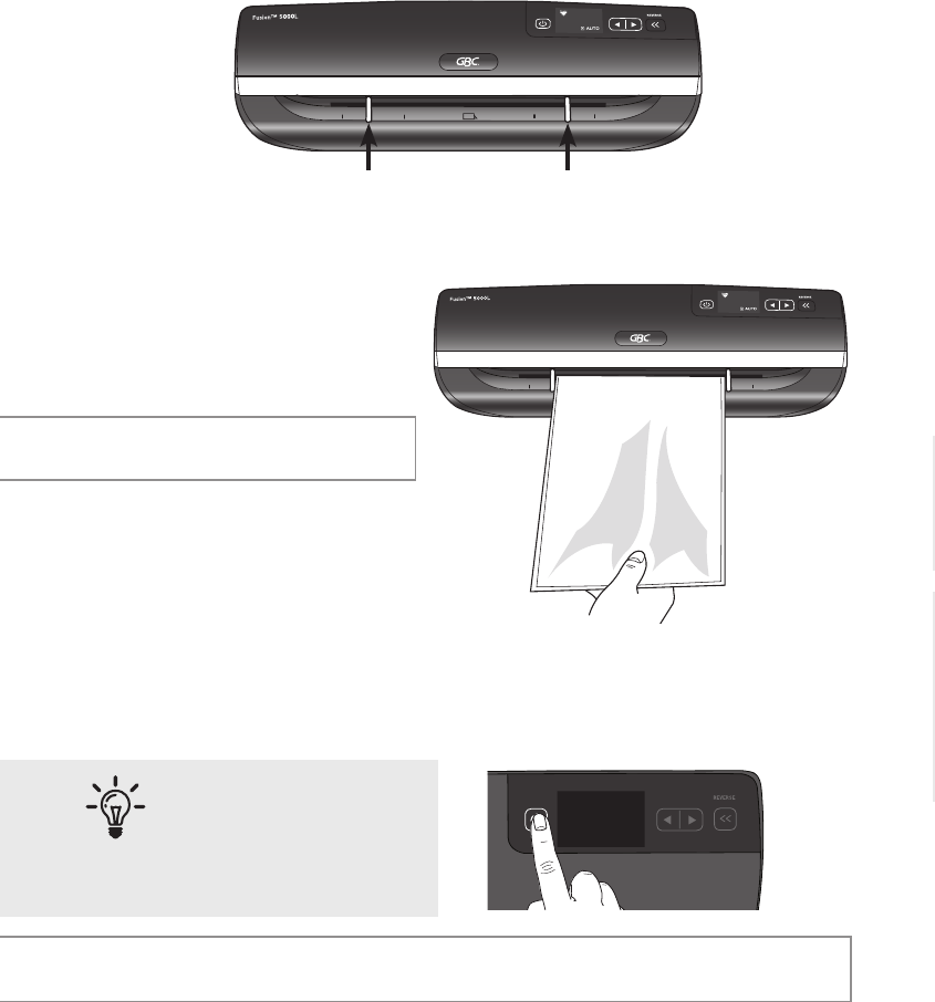 2 Alimentez le bord collé de la pochette dans la plastieuse, entre les butées. La plastieuse saisit