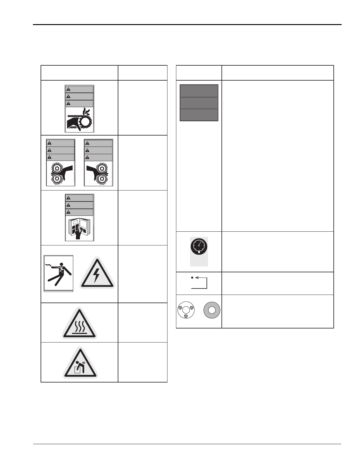 The following are typical safety hazard decals used on GBC Pro-Tech machines, with a brief description (“Mean-