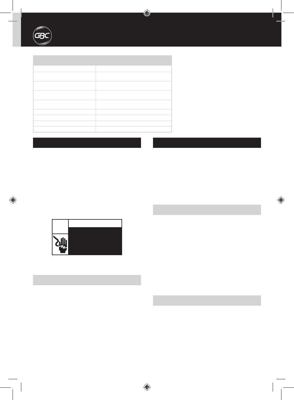 wArning: To Avoid elecTricAl shocK or oTher
