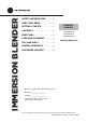 IMMERSION BLENDER SAFETY INFORMATION . . . . . . . . .3 PARTS INCLUDED . . . . . . . . . . . . . . . .4 GETTING STARTED . . . . . . . . . . . . . .5 CONTROLS . . . . . . . . . . . . . . . . . . . . . . . .5 FUNCTIONS . . . . . . . . . . . . . . . . . . . . . . .6 CARE AND CLEANING . . . . . . . . . . .7 TIPS AND HINTS . . . . . . . . . . . . . . . . . .8 OWNER’S MANUAL G8H0AASSPSS G8H1AASSPSS G8HKAASSRSS ENGLISH/FRANÇAIS LIMITED WARRANTY . . . . . . . . . . . .9 CONSUMER SUPPORT . . . . . . . . . .