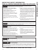 SAFETY INFORMATION IMPORTANT SAFETY INFORMATION READ ALL INSTRUCTIONS BEFORE USING THE APPLIANCE CONNECTING ELECTRICITY WARNING ELECTRICAL SHOCK HAZARD Plug into a grounded 3-prong outlet 'R QRW UHPRYH WKH JURXQG SURQJ 'R QRW XVH DQ DGDSWHU )DLOXUH WR IROORZ WKHVH LQVWUXFWLRQV FDQ UHVXOW LQ GHDWK ILUH RU HOHFWULFDO VKRFN Do not, under any circumstances, cut or remove the third (ground) prong from the power cord. For personal safety, this appliance must be properly grounded.