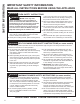 SAFETY INFORMATION IMPORTANT SAFETY INFORMATION READ ALL INSTRUCTIONS BEFORE USING THE APPLIANCE WARNING GENERAL SAFETY INSTRUCTIONS WARNING NEVER use this appliance as a space heater to heat or warm the room. Doing so may result in carbon monoxide poisoning and overheating of the oven. Ŷ 8VH WKLV DSSOLDQFH IRU LWV LQWHQGHG SXUSRVH DV described in this owner’s manual.