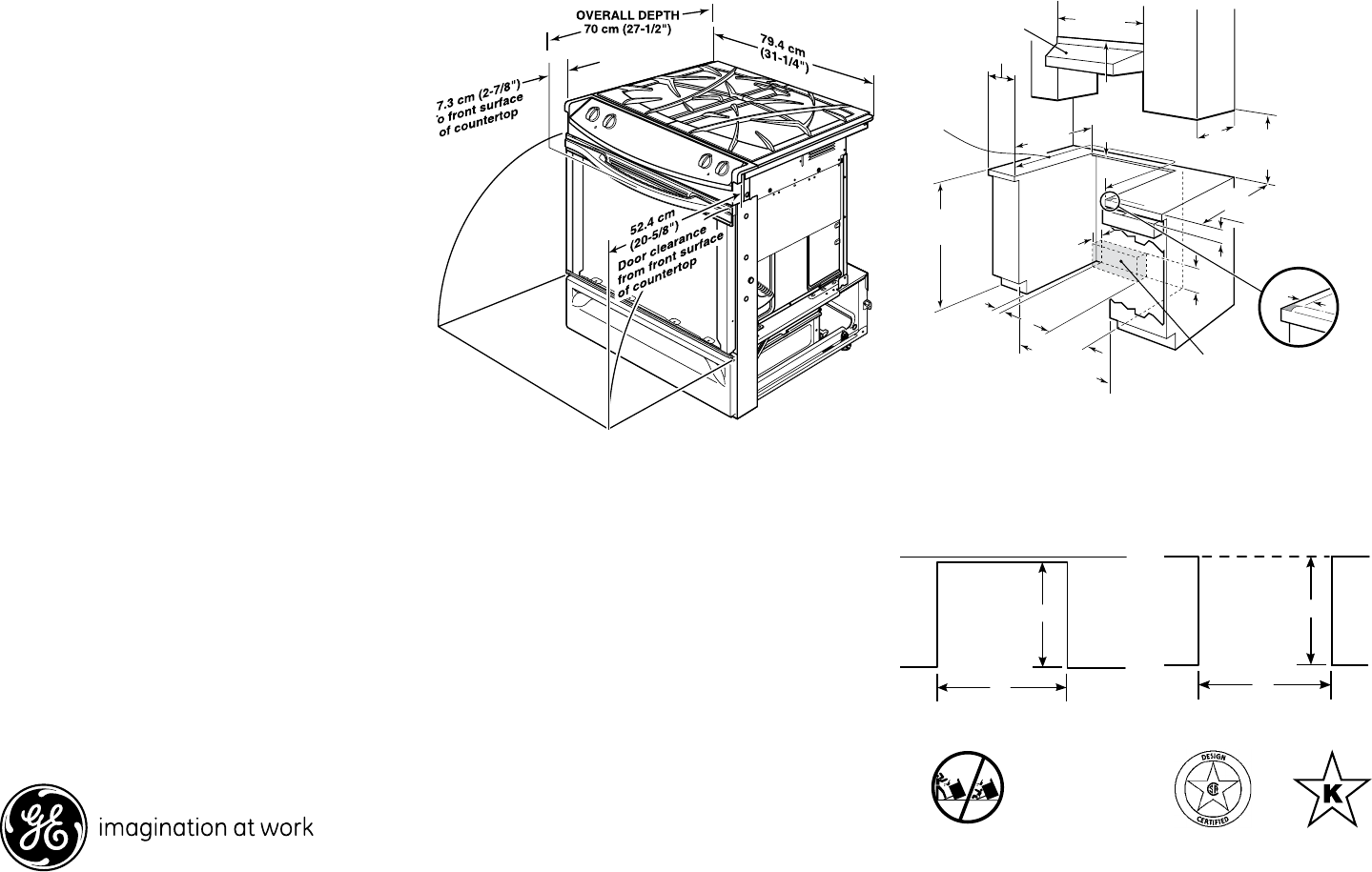 Note: Range may be placed with 0" clearance (flush) at the back wall and side walls