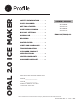OPAL 2.0 ICE MAKER SAFETY INFORMATION . . . . . . . . . 3 PARTS INCLUDED. . . . . . . . . . . . . . . . 5 OWNER’S MANUAL GETTING STARTED . . . . . . . . . . . . . . 6 XPIO13BCBT XPIO13SCSS CARE AND CLEANING. . . . . . . . . . . 7 XPIO23SCSS DISPLAY SETTINGS. . . . . . . . . . . . . 10 MAKING ICE. . . . . . . . . . . . . . . . . . . . . . 10 XPIO23BCBT ENGLISH/FRANÇAIS DRAINING . . . . . . . . . . . . . . . . . . . . . . . . 10 WATER FILTER. . . . . . . . . . . . . . . . . .