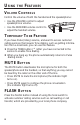 USING THE FEATURES VOLUME CONTROLS Control the volume of both the handset and the speakerphone: • Use the VOLUME control to adjust speakerphone volume. RINGER RECEIVER LO MED HI ME LO VOLU PULSE TONE OFF LO HI HI • Use the RECEIVER volume control to adjust the handset volume. TEMPORARY TONE FEATURE If you have Pulse (rotary) service, and want to access customer calling services that require Tone dialing, such as getting information from a local bank, you can use this feature.