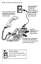 WALL MOUNT INSTALLATION CONTINUED RINGER R RECEIVE LO MED HI UME LO VOL E PULSE TON OFF LO HI HI Set the PULSE/TONE switch to TONE if you use Touch-Tone service; set it to PULSE if you have rotary service. Set the RINGER VOLUME switch as desired. 1 12 MEMORY SPEAKERPHONE 6 7 2 8 3 9 4 AREA CODE 5 PHONE NUMBER EMERGENCY QUICK DIAL FLASH Plug the handset cord into the handset and into the unit, and then hang up the phone.
