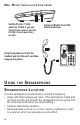 SPEAKERPHONE USE Note the following guidelines when using the speakerphone: • The speakerphone works similar to a two-way radio in that you can only listen or talk at one time. • Stay reasonably close to the phone so that you can be clearly heard by the person to whom you are talking. • You can adjust the speaker volume by sliding the VOLUME control on the right side of the base unit. • The speakerphone indicator light comes on when the speakerphone is in use.