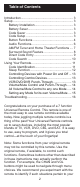 Table of Contents Introduction............................................................. 3 Setup...................................................................... 3 Battery Installation............................................. 3 Battery Saver..................................................... 3 Code Saver....................................................... 3 Code Setup....................................................... 3 Button Functions...............................................