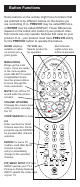 Button Functions Some buttons on the remote might have functions that are referred to by different names on the device you are controlling. E.G. PREV.CH may be called RECALL, or ENTER may be called DISPLAY. These differences depend on the brand and model of your product. Also, this remote can only operate features that exist on your product. E.G., your product must have PREV.CH ability for the PREV.CH button to operate this feature. GUIDE displays satellite or cable on-screen program guide. TV, VCR, etc.