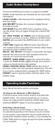 Audio Functions, cont. Using the number buttons to change audio inputs To select a device, press the number button (1-6) that corresponds to the device you want to operate (CD, TAPE, TUNER, TV, or VIDEO). Using the function buttons to change audio devices To select a device, press the FUNCTION button until the input you want to operate appears on your system. Operating a CD player or Tape Deck Use the Play, Forward, Reverse, Record, Stop, and Pause buttons for CD Players and Tape Decks.
