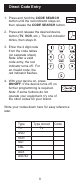Troubleshooting Remote does not operate your product. • • • • Press the device button of the product you want to control. Program the remote with a new code. Install new batteries. (You might have to reprogram your remote after installing new batteries.) Remote may not be compatible with your product. Remote does not operate some features of your product. • • Sometimes a particular code might operate some features but not all. Try programing remote with a new code.