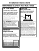 Installation Instructions IMPORTANT SAFETY INSTRUCTIONS For Your Safety Electrical Requirements (cont.) • Be sure your oven is installed properly by a qualified installer or service technician. • Be sure the oven is securely installed in a cabinet that is firmly attached to the house structure. Weight on the oven door could cause the oven to tip and result in injury. Never allow anyone to climb, sit, stand or hang on the oven door.