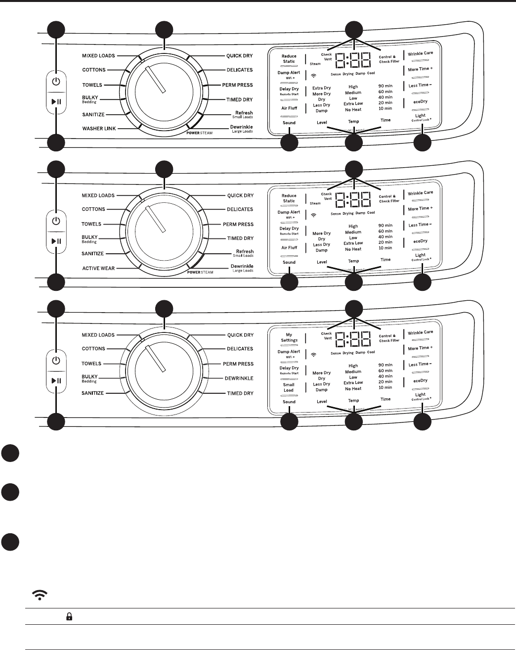 La secadora está bloqueada – titilará una vez si presiona cualquier botón o gira la perilla de ciclo.