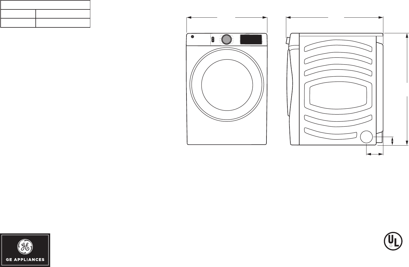 NOTE: Dryer wall outlet must be located within 36"