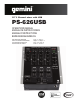 PS-626USB INTRODUCTION: Congratulations on your purchase of Gemini PS-626USB 10” 3 channel stereo mixer. This-state-of-the-art mixer features the latest technological advances and is backed by a 1 year warranty, excluding the cross fader. The cross fader is backed by a separate 90 day warranty. Prior to use we suggest that you carefully read all the instructions.