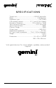 Gemini Sound Products Unit 44 Brambles Enterprise Centre Waterlooville P07 7TH, UK Tel: 087 087 00880 Fax: 087 087 00990 EN ESPAÑA En caso de mal funcionamiento de esta unidad, por favor contacte con el Servicio de Atención al Cliente en el teléfono 93 436 37 00 que le asesorará sobre el procedimiento correcto para solucionarlo.