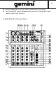 GEM-5USB & GEM-8USB PORTABLE MIXING CONSOLE Main Section 17. 18. 19. 20. 21. 22. 23. 24. Esta PANTALLA DE NIVEL se utiliza para ajustar el intervalo de tiempo de repetición de eco. La posición media (5) es más efectiva. Los LED leen el nivel de salida de su mezclador. Asegúrese de que los dos LED de clip no se iluminen. El control EFF ajusta el volumen de efectos del canal correspondiente.