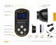 Transmitting indicator LED 7˝ umbrella/grid reflector PRODUCT OVERVIEW Status LEDs Display Power button Minus (-) button Mode button Plus (+) button Transport cap Diffuser cover AC/DC adapter AC cable MonoBright LED Daylight 750 - USER MANUAL 9