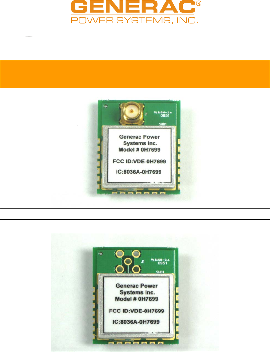Generac 0H7699 Wireless Module: Data Sheet/Manual 0H7699 module with connector for external antenna (see approved antennas listed below). 0H7699 module for wire antenna (see approved antennas listed below).