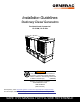 ® Installation Guidelines Stationary Diesel Generators Residential and Commercial 15–50 kW, 12–50 kVa WARNING Loss of life. This product is not intended to be used in a critical life support application. Failure to adhere to this warning could result in death or serious injury. (000209b) Register your Generac product at: WWW.GENERAC.COM 1-888-GENERAC (888-436-3722) Para español , visita: http://www.generac.com/service-support/product-support-lookup Pour le français, visiter : http://www.generac.