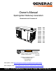 ® Owner’s Manual Spark-Ignited Stationary Generators Residential and Commercial 22 kW 25 kW 27 kW 30 kW 2.4L 1.5L 2.4L 1.5L 32 kW 36 kW 38 kW 45 kW 48 kW 60 kW 2.4L 2.4L 2.4L 2.4L 5.4L 2.4L WARNING Loss of life. This product is not intended to be used in a critical life support application. Failure to adhere to this warning could result in death or serious injury. (000209b) Register your Generac product at: WWW.GENERAC.COM 1-888-GENERAC (888-436-3722) Para español , visita: http://www.generac.