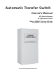 Automatic Transfer Switch Owner’s Manual ATS Service Entrance HS Type Transfer Switch Models: 005036-0, 100 Amp, 250 Volts and 004945-1, 200 Amp, 250 Volts This manual should remain with the unit.