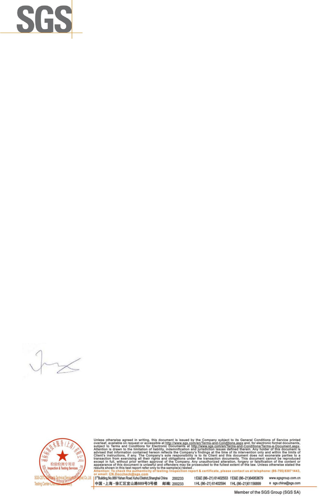 SDS Report No. SHAEC1901441310 Date: Feb. 15, 2019 Page 1 of 1