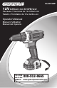 GLCD122P 12V Lithium-ion Drill/Driver Perceuse / Tournevis de 12v lithium-ion Taladro / Tornillador de 12v de litio-ion Operator’s Manual Manuel d’utilisation Manual del Operario 888-552-8665 TOLL FREE HELP LINE: WEBSITE: www.genesispowertools.
