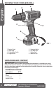English KNOWING YOUR CORDLESS DRILL 3 2 1 4 5 6 7 8 1. 2. 3. 4. Keyless Chuck Torque Ring 2-Speed Gear Switch Trigger Switch 5. 6. 7. 8. FIG 1 Reversing Switch LED Work Light Battery Pack Metal Belt Clip UNPACKING AND CONTENT IMPORTANT: Due to modern mass production techniques, it is unlikely the tool is faulty or that a part is missing. If you find anything wrong, do not operate the tool until the parts have been replaced or the fault has been rectified.