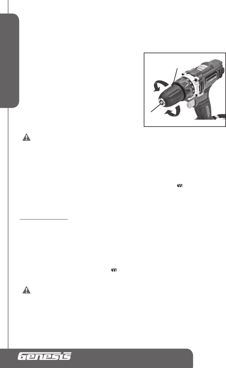 not insert the drill bit into the chuck jaws at an angle and tighten. This could cause the