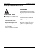 Fourth Edition • Second Printing Operator’s Manual PRE-OPERATION INSPECTION Pre-operation Inspection o Be sure that the operator’s manual is complete, legible and available for reference. o Be sure that all decals are legible and in place. See Decals section. Check the following components or areas for damage, improperly installed or missing parts and unauthorized modifications: Visually inspect all machine components.