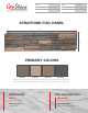 FAMILY STACKED STONE DEPTH 1.25 INCHES WARRANTY 25 YEARS WEIGHT 3 LBS COVERAGE AREA 3.13 SQFT R-VALUE 3.6 PER INCH STRATFORD FULL PANEL 1” 41” 1” 11” PRIMARY COLORS #79726c #c0a18c #967a6e #5e5b56 Tip: Zoom into the colors on your mobile phone to see how they complement your existing design. You can also use these Hex codes in Photoshop or similar program to view the colors on a larger scale. QUESTIONS TIPS FOR SUCCESS EMAIL US info@genstone.